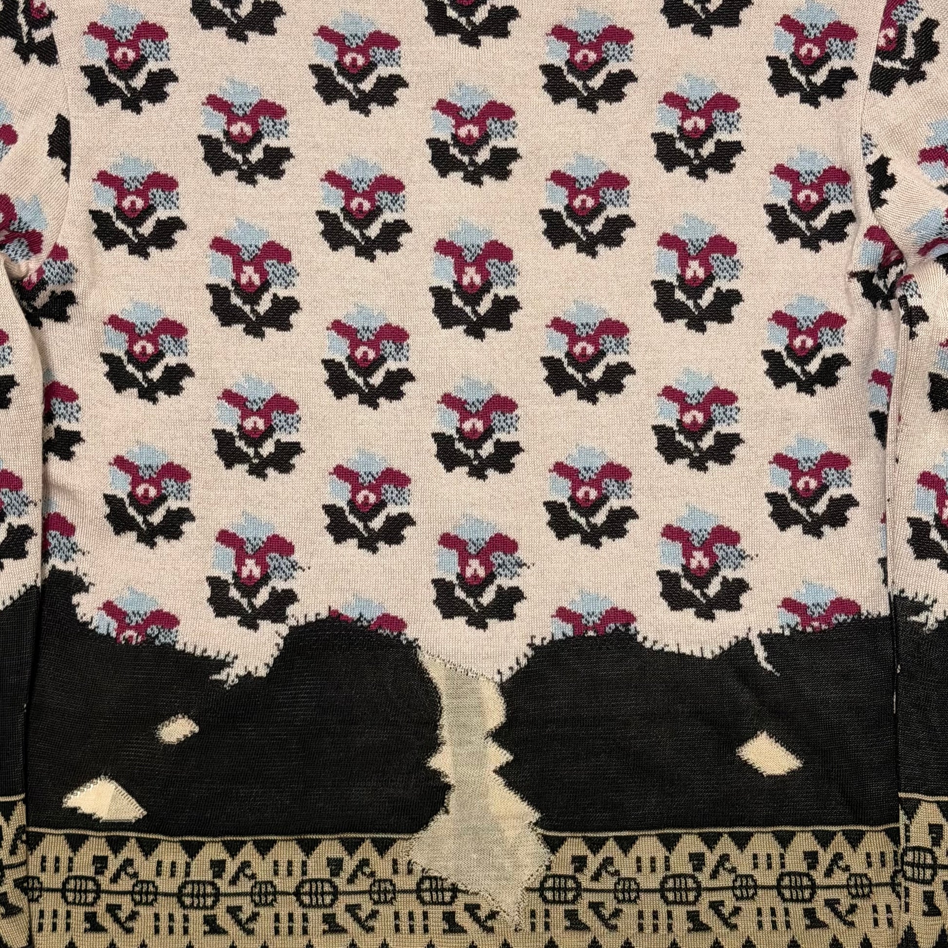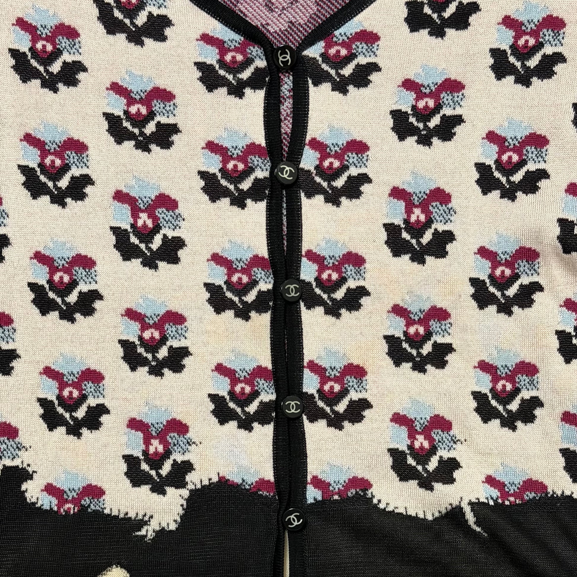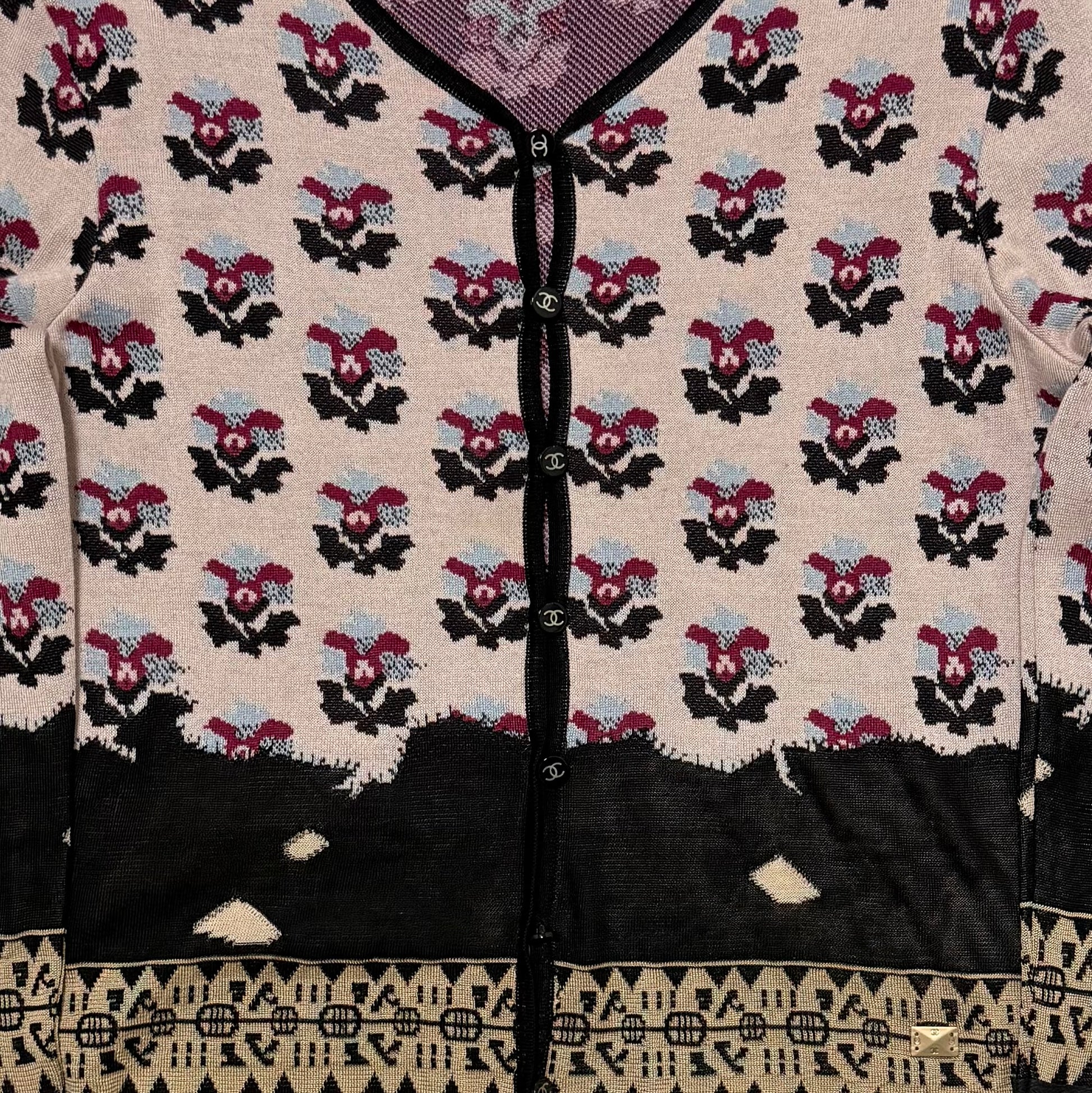 CHANEL Fall Winter 2003 Floral Motif Knit Cardigan with Fringe-Trimmed Sleeves