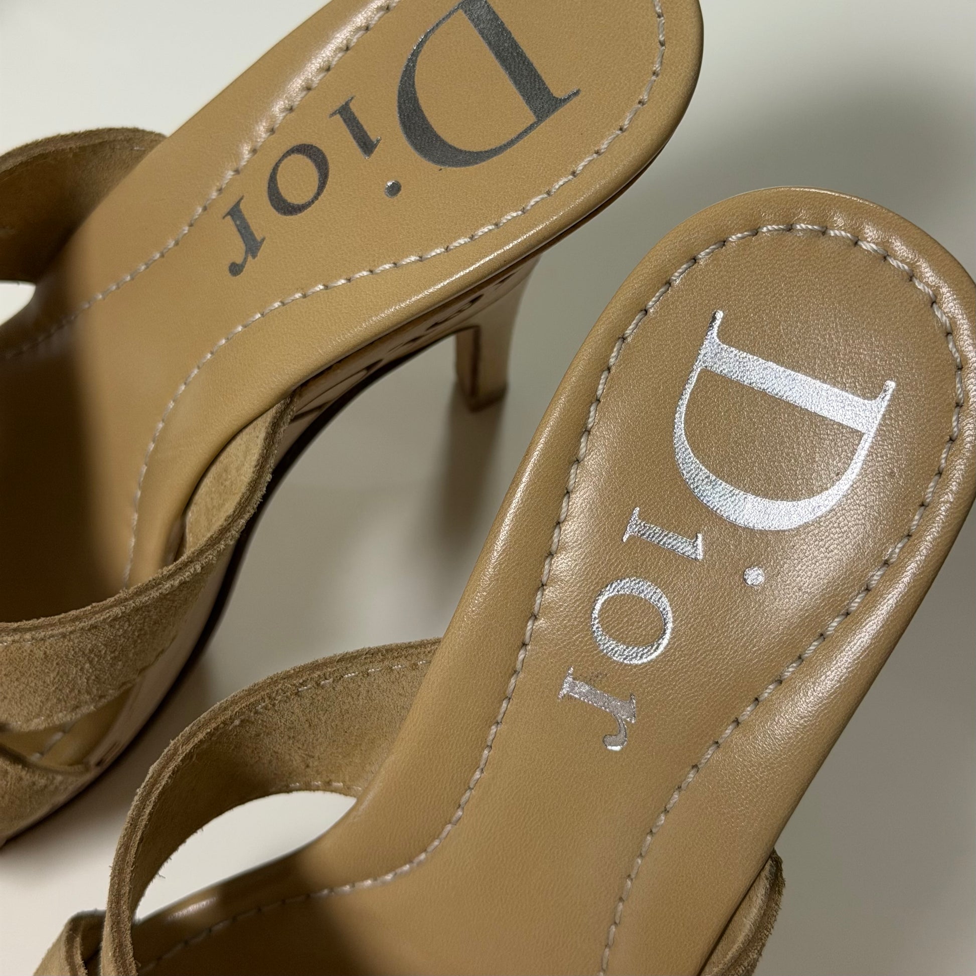 CHRISTIAN DIOR Vintage Peace & Love Suede Wooden Platform Sandals