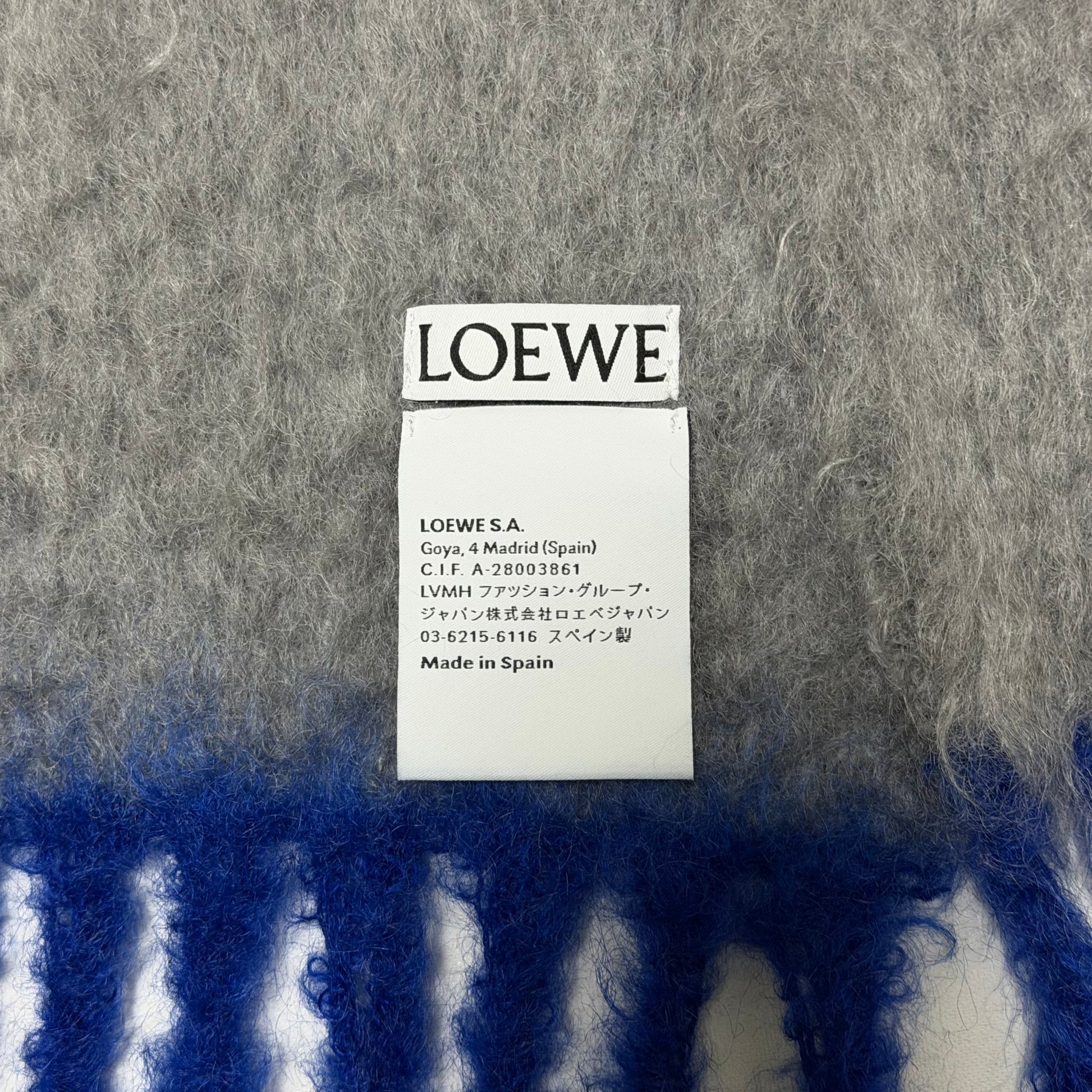 LOEWE Fall Winter 2024 Mohair & Wool Anagram Patch Fringe Scarf