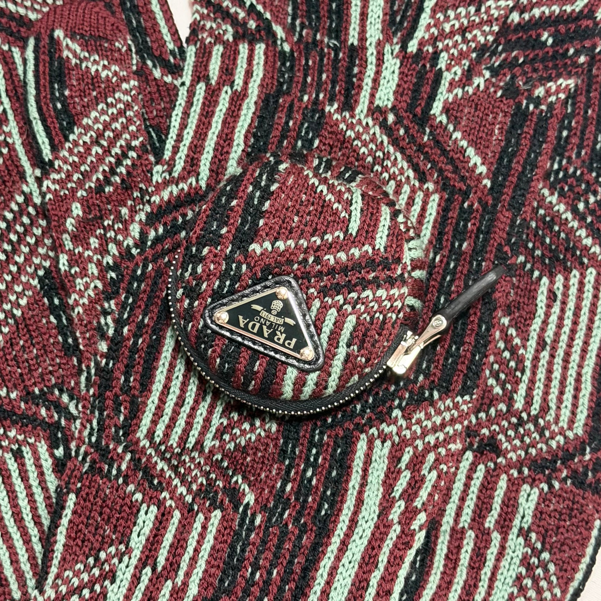PRADA Fall Winter 2021 Long Jacquard Wool Gloves with Circle Zip Pouch